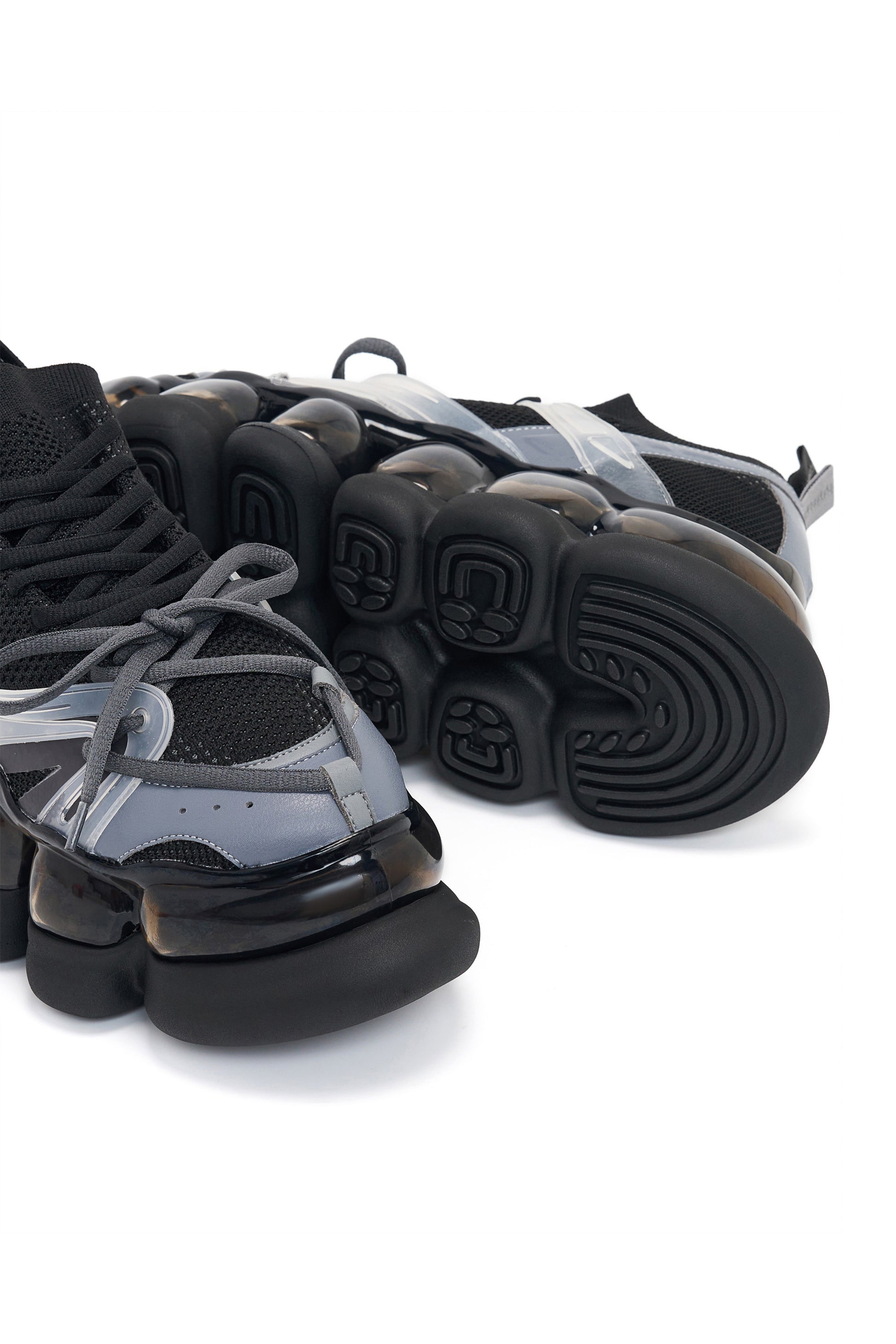 These shoes have a three-dimensional look, with a layered structure and CPU parts arranged as if stitched with shoelaces, creating a parallax effect.