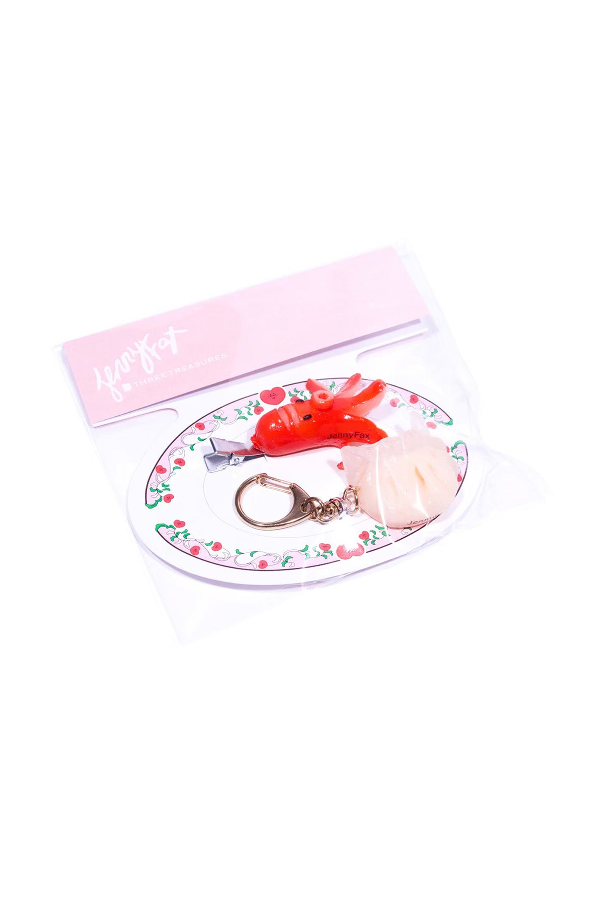 Food replica hairpins and key chains, a collaboration between Jenny Fax and three treasures.