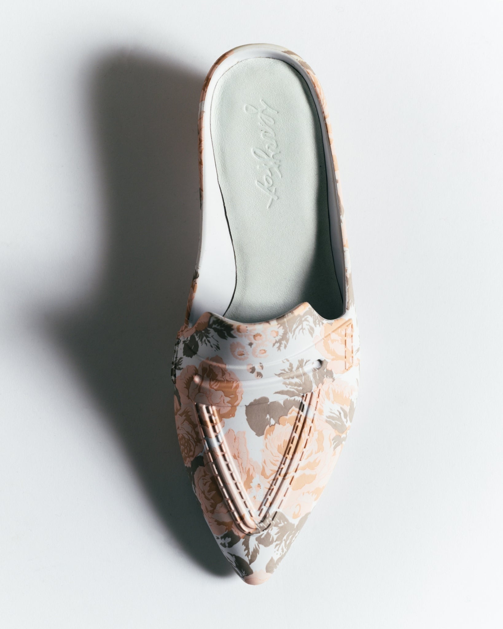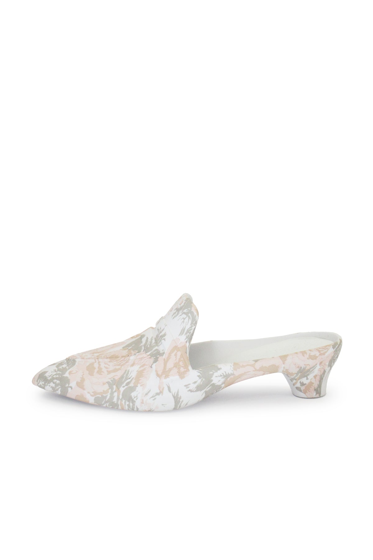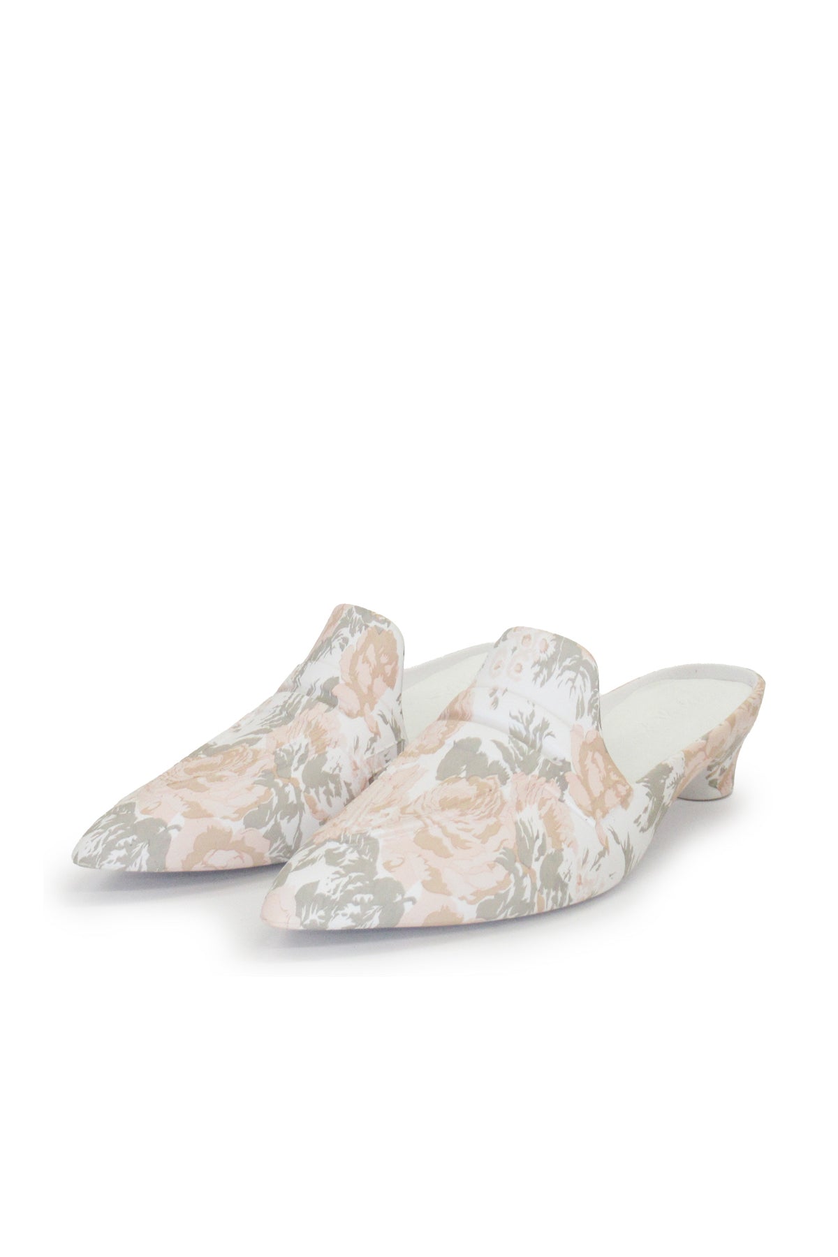 Classic design mules with a floral print that accentuates their elegance.