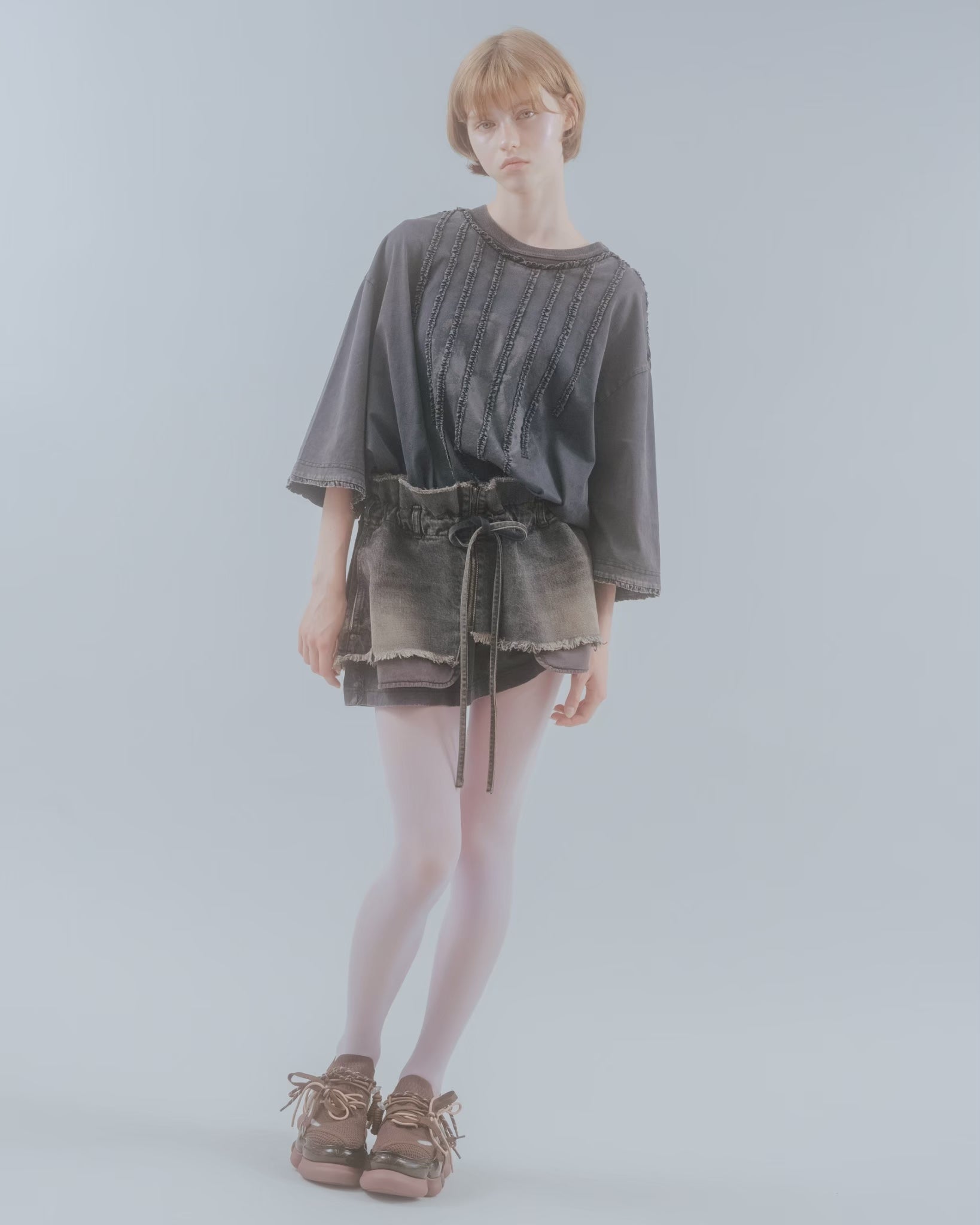 [SS26 Pre-order] Tie Neck T-Shirt / Gray / MSS26T011