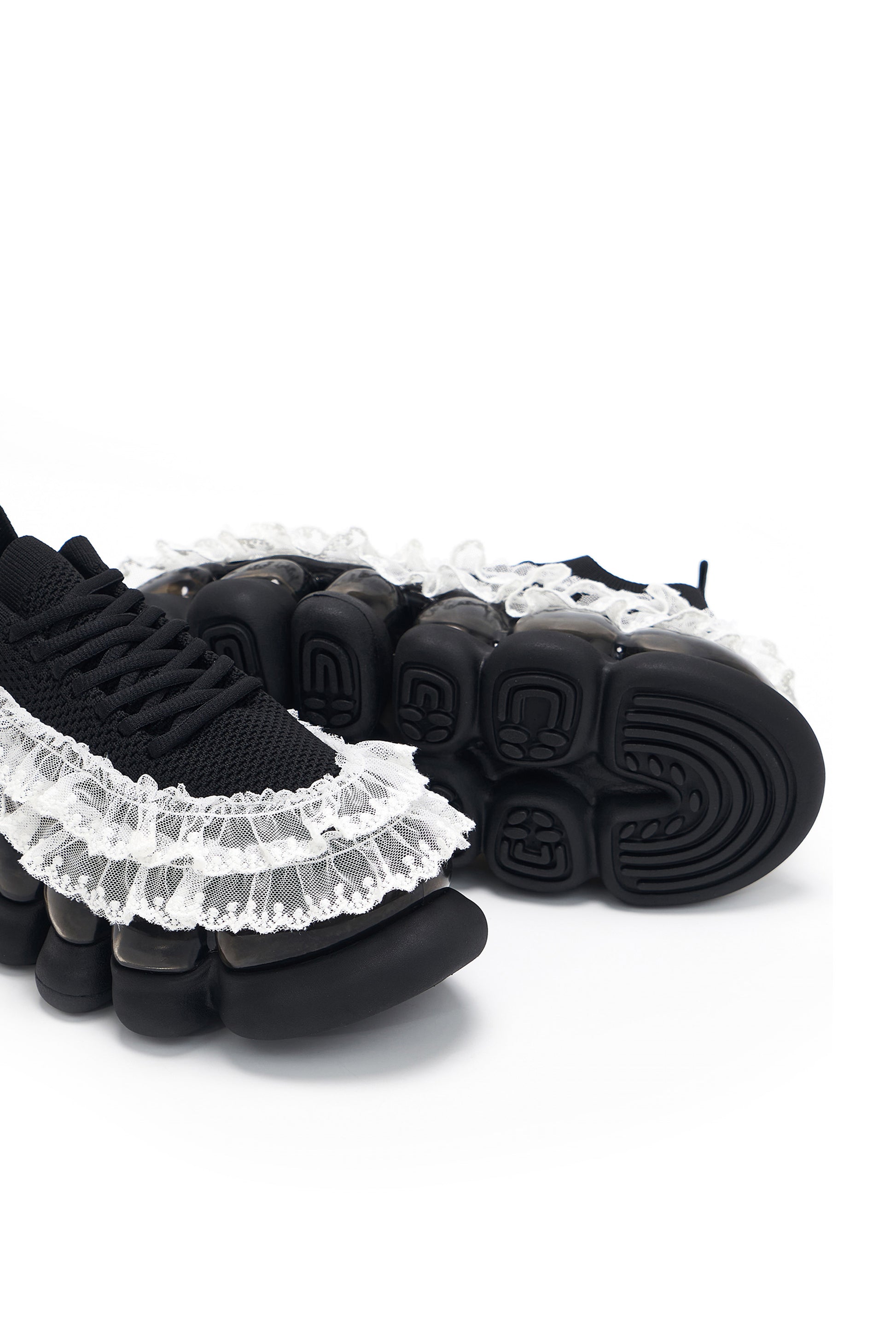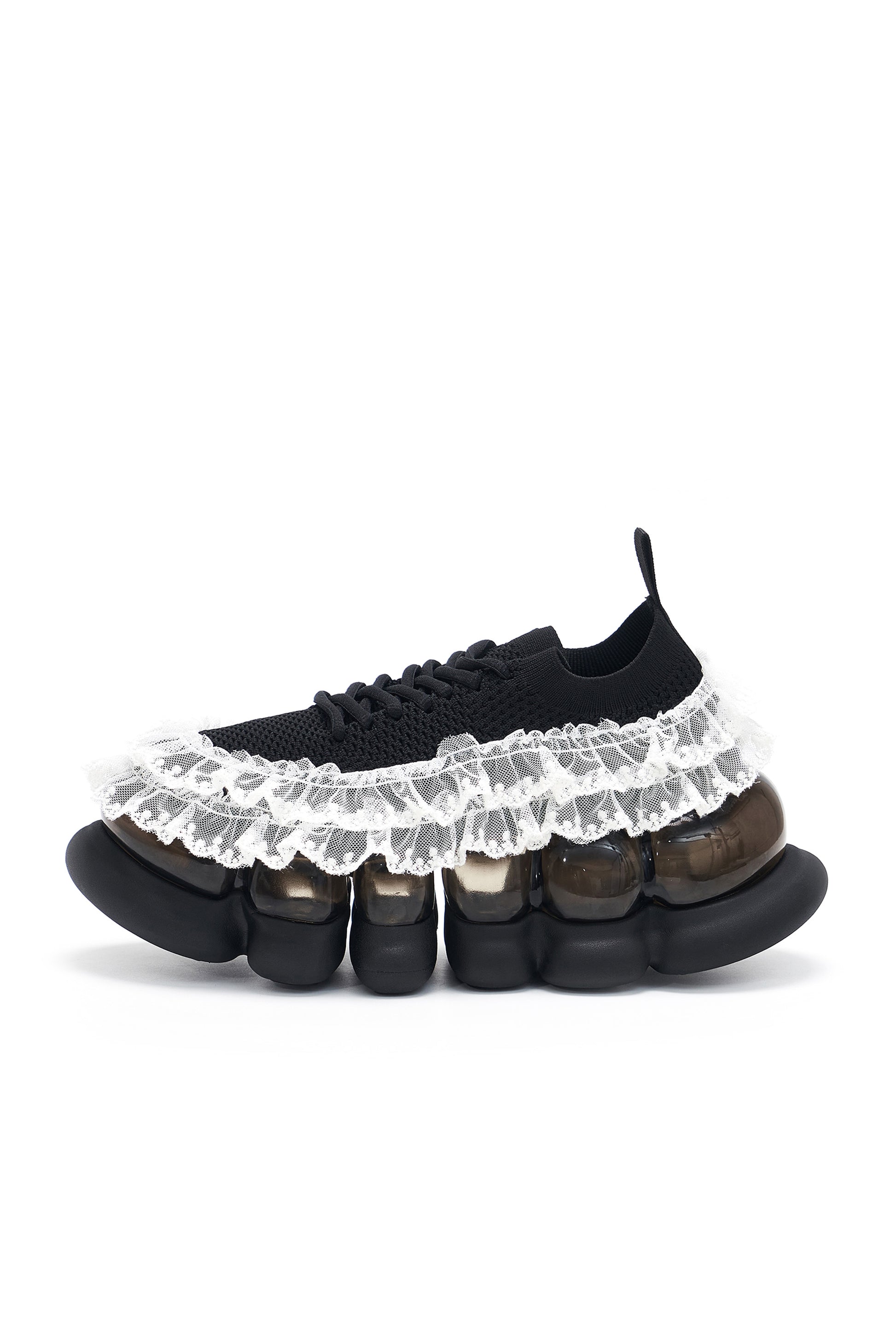 レースがついたニットアッパーに、ソール部分がさらにボリューミーになった“Jewelry” Ark Shoes。厚底ながらもスニーカーと変わらない履きやすさが魅力です。