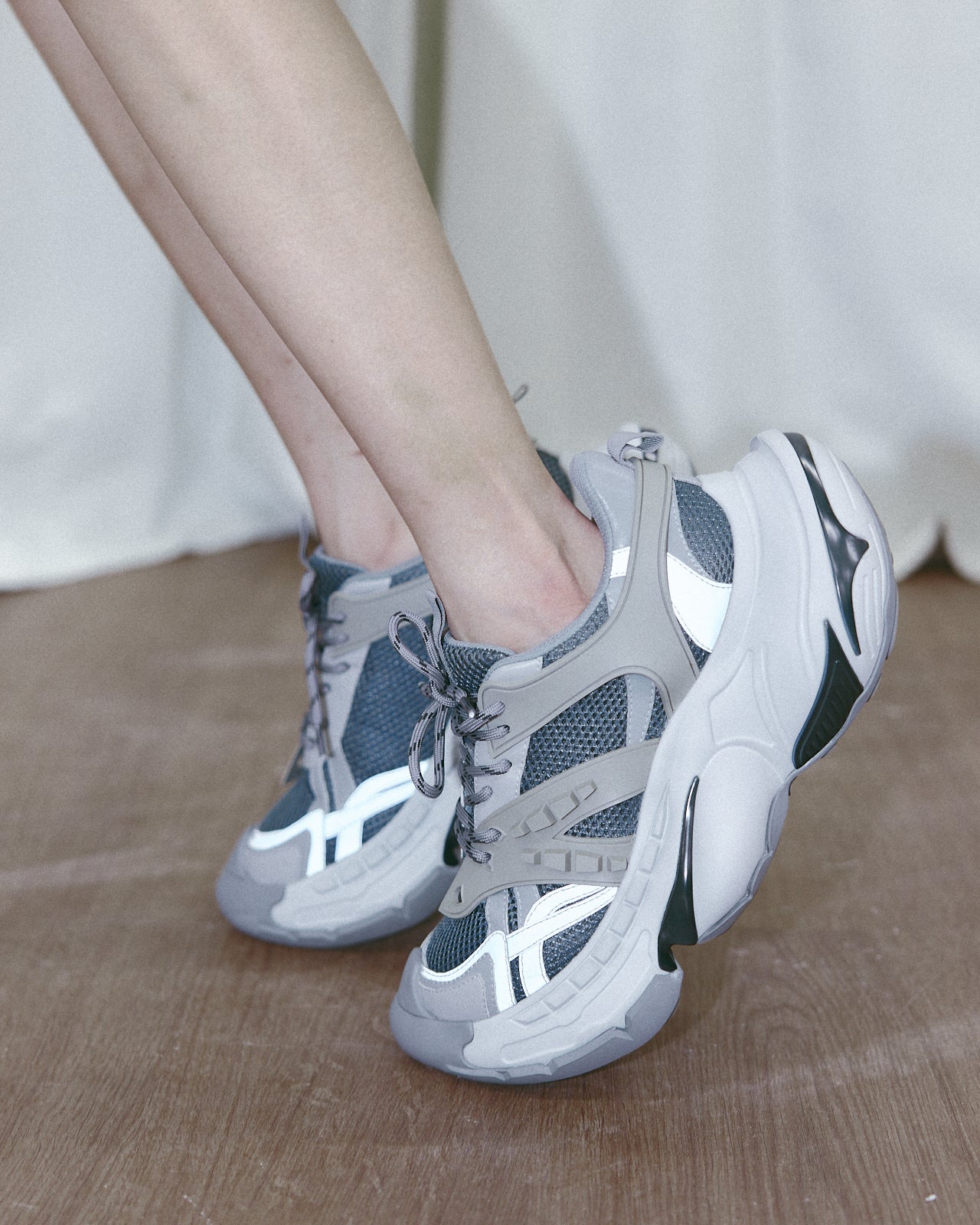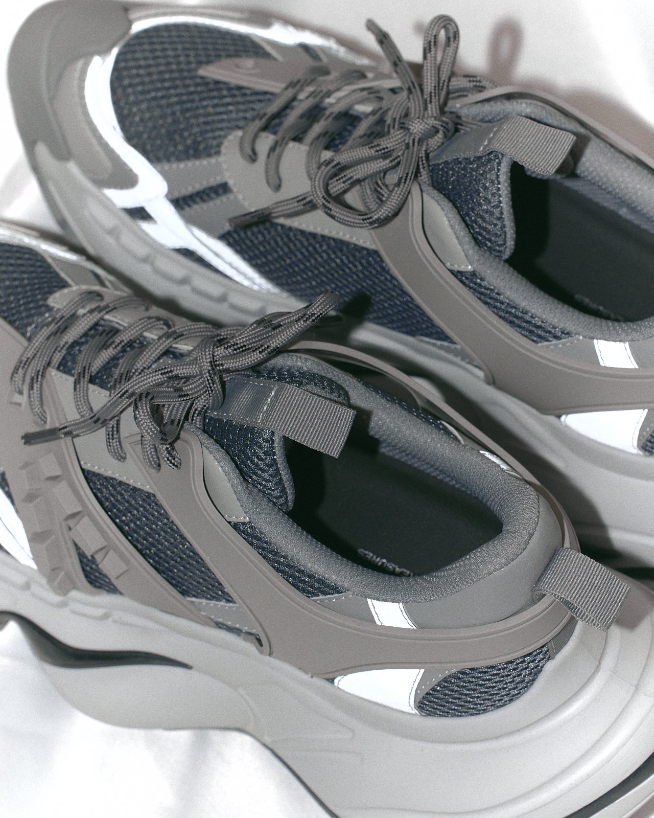 シルバー部分の素材に反射材を使用しています。