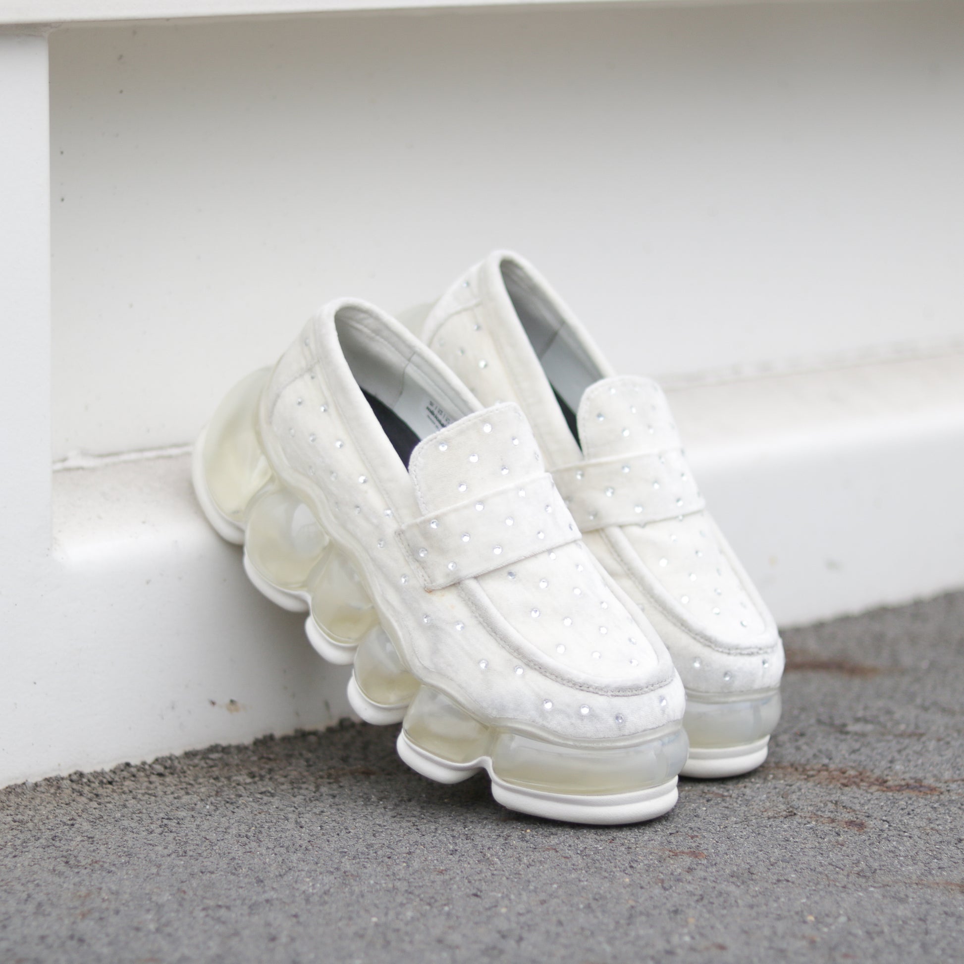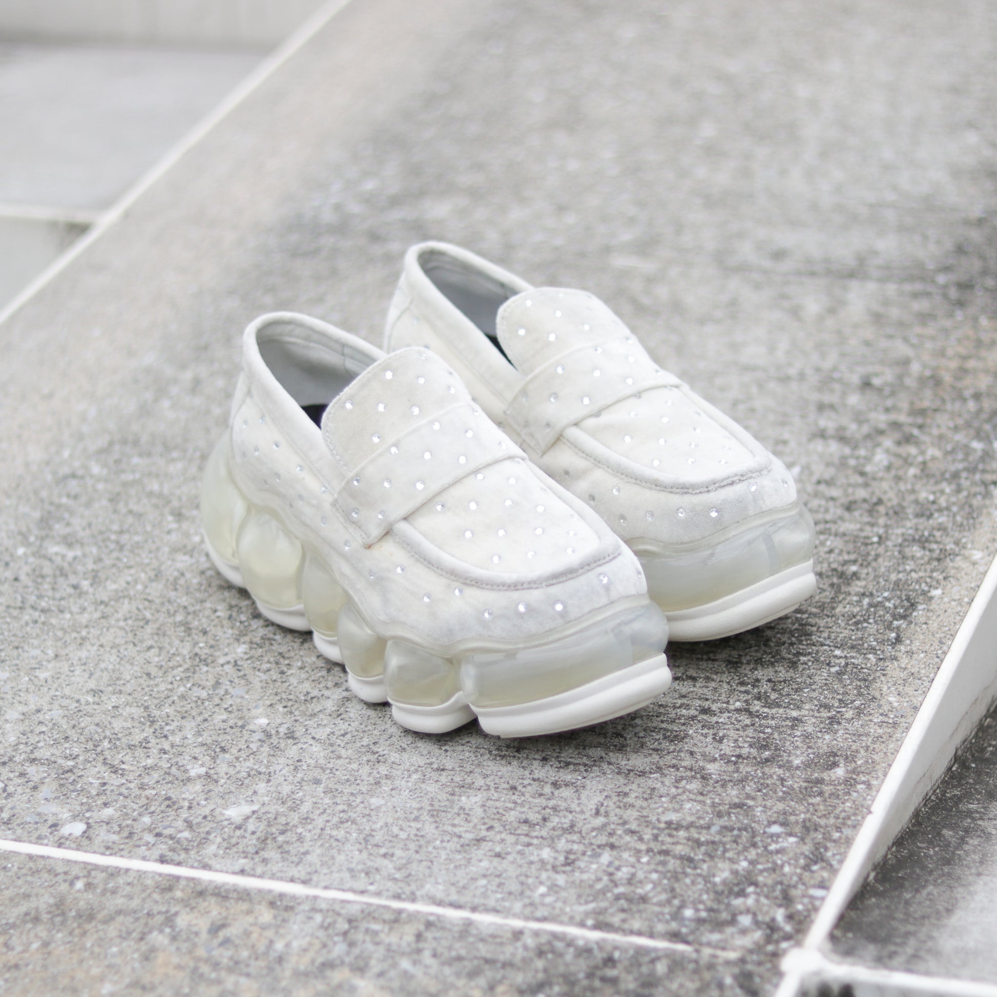 上品なベルベット生地を使用し、ラインストーンが施されたspecialなローファー。