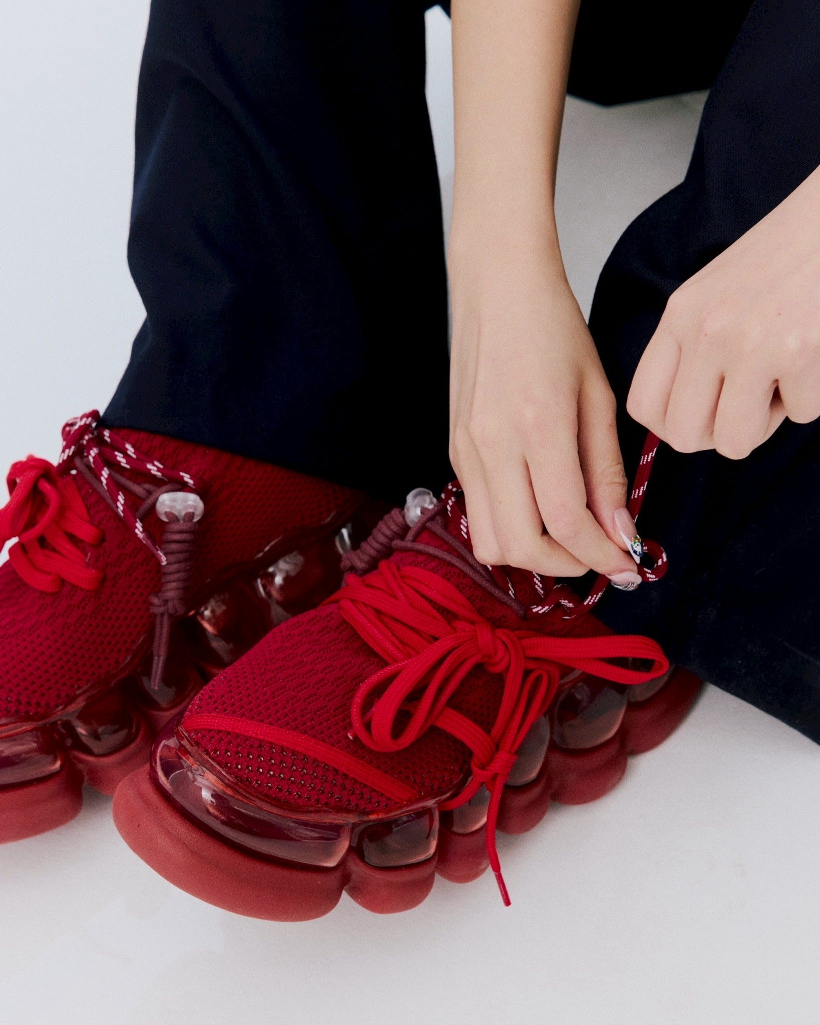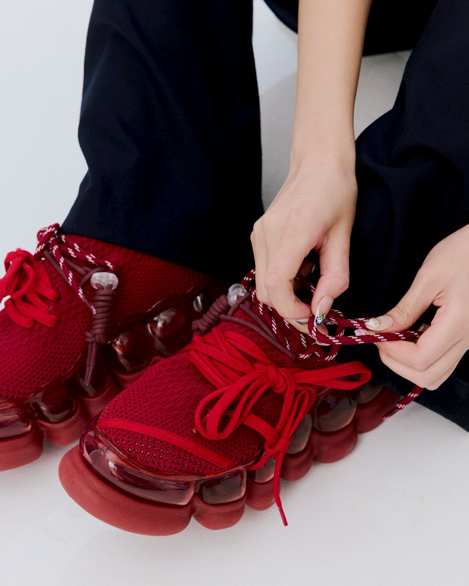 鞋带将按照产品图片中所示的方式系好,但“混乱”系列的魅力之一在于您可以根据自己的喜好自由排列它们。