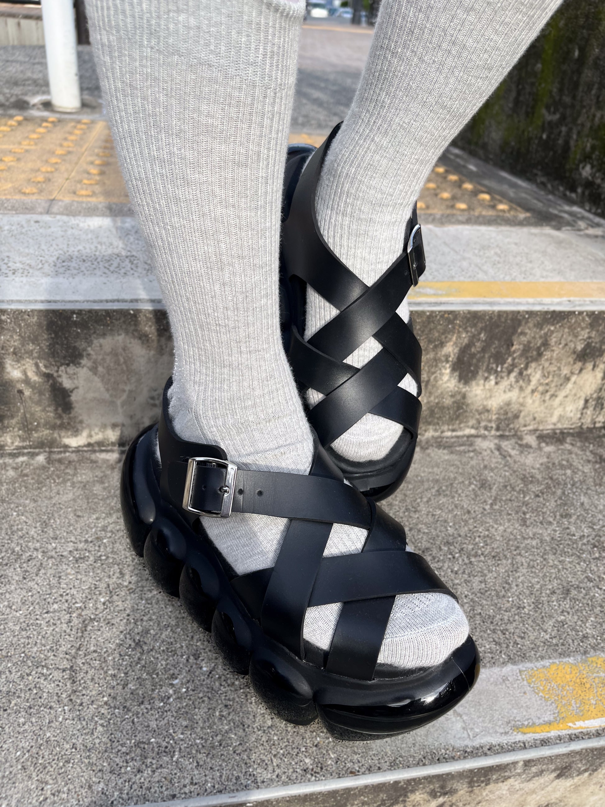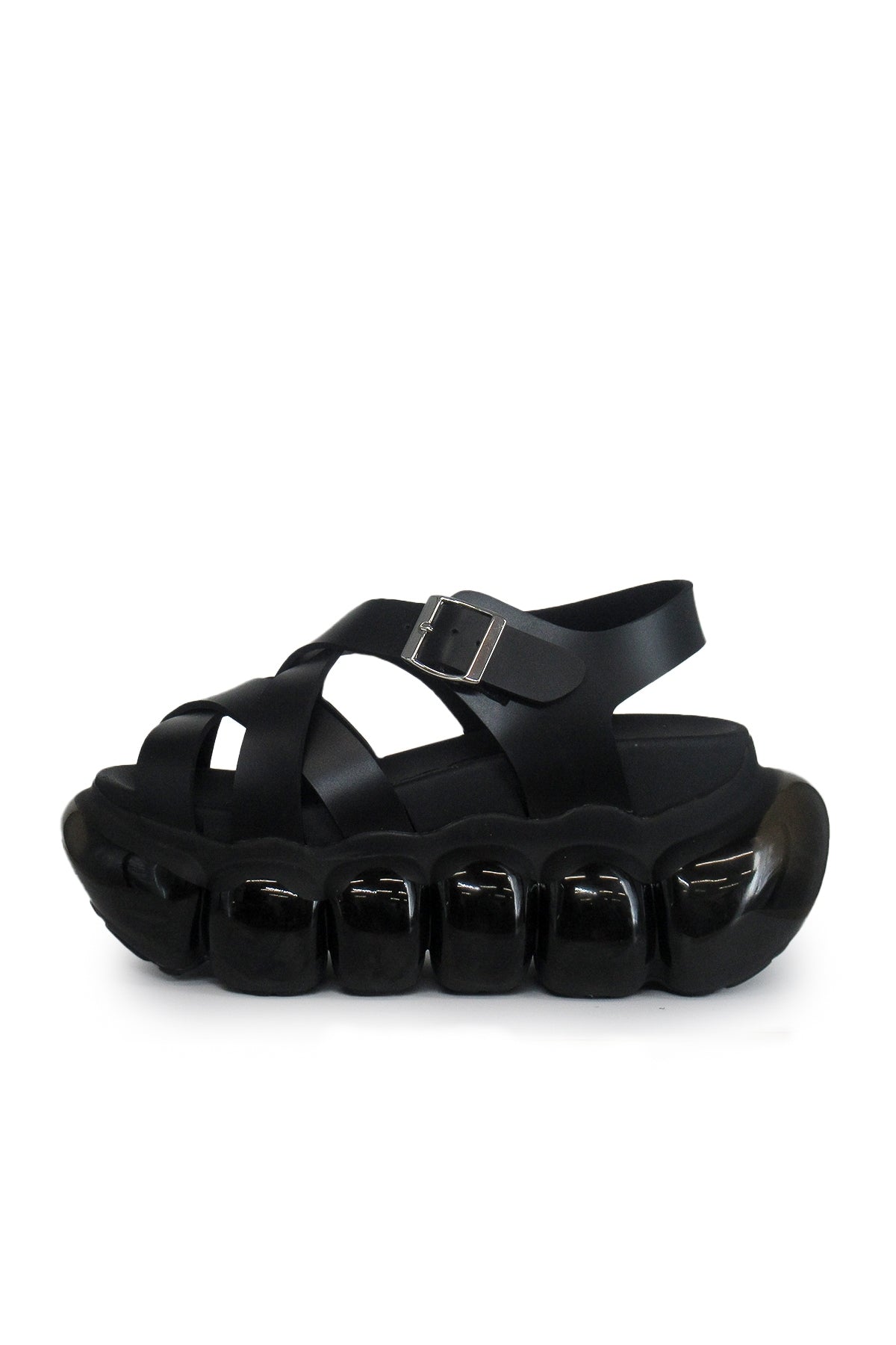 “珠宝”泡泡十字凉鞋/黑色
