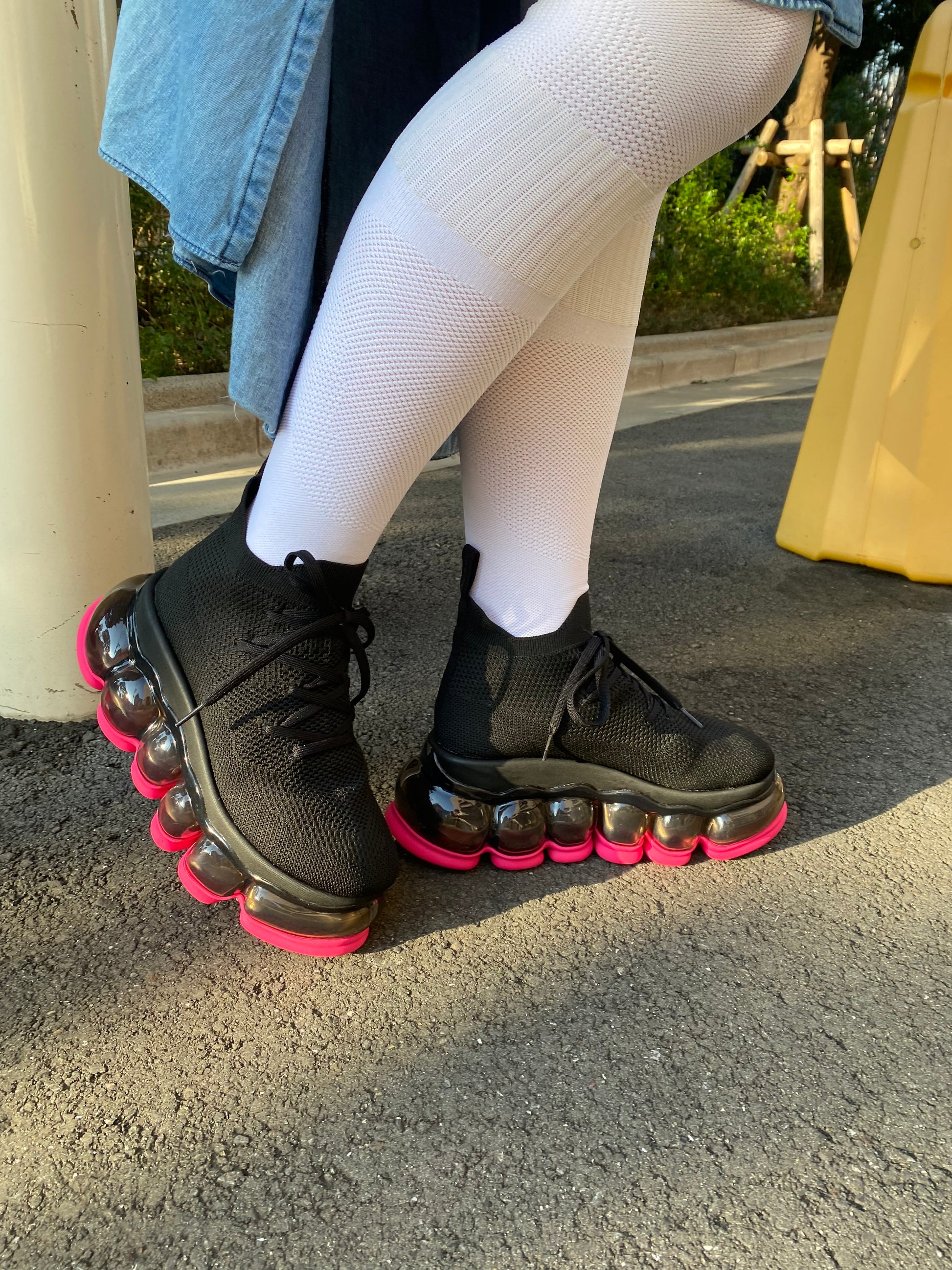强调黑色橡胶鞋底颜色。