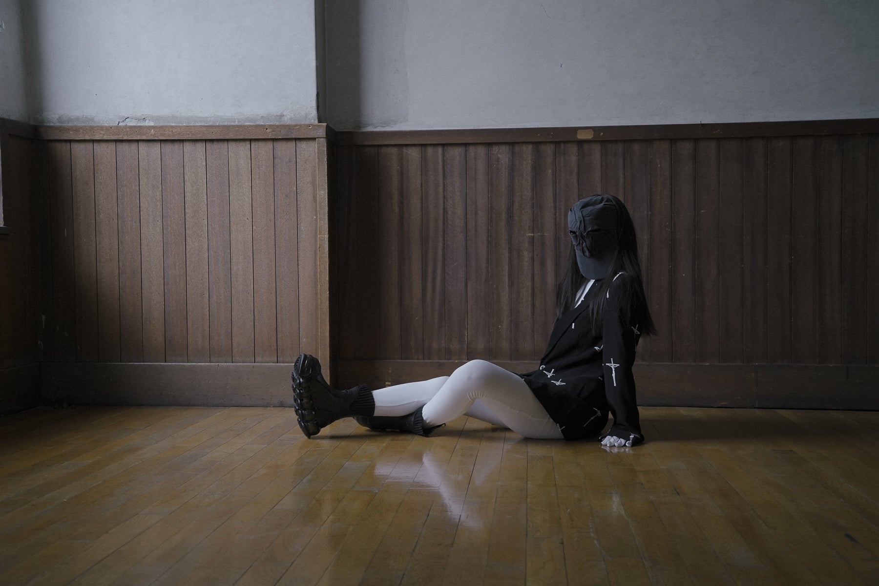 虽然材质感觉很重,但切换部分的褶边和顶部的褶皱给人一种轻盈的感觉。