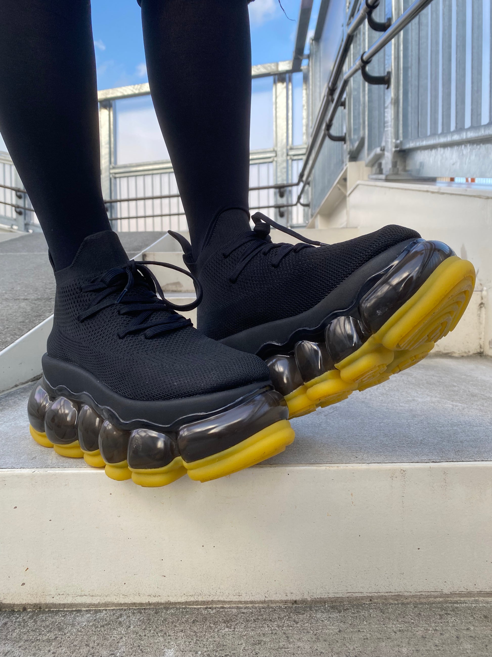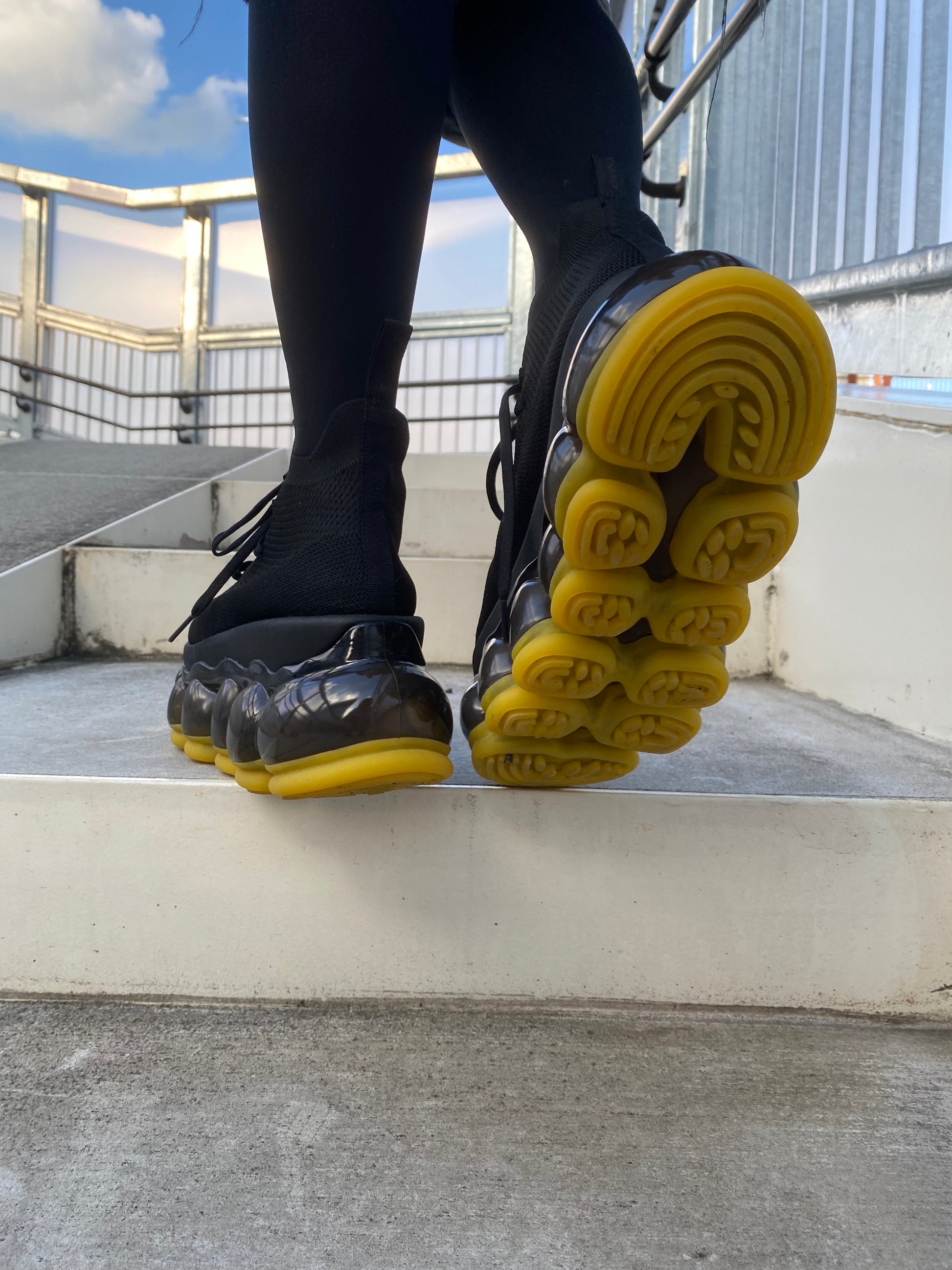 强调黑色橡胶鞋底颜色。