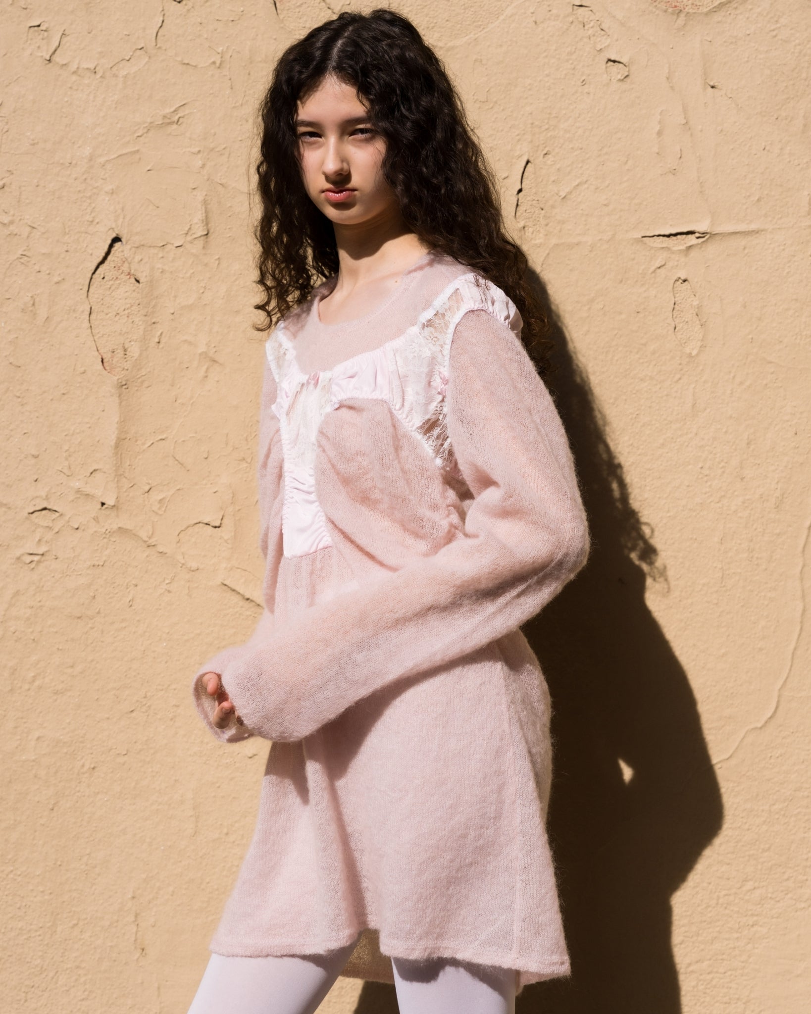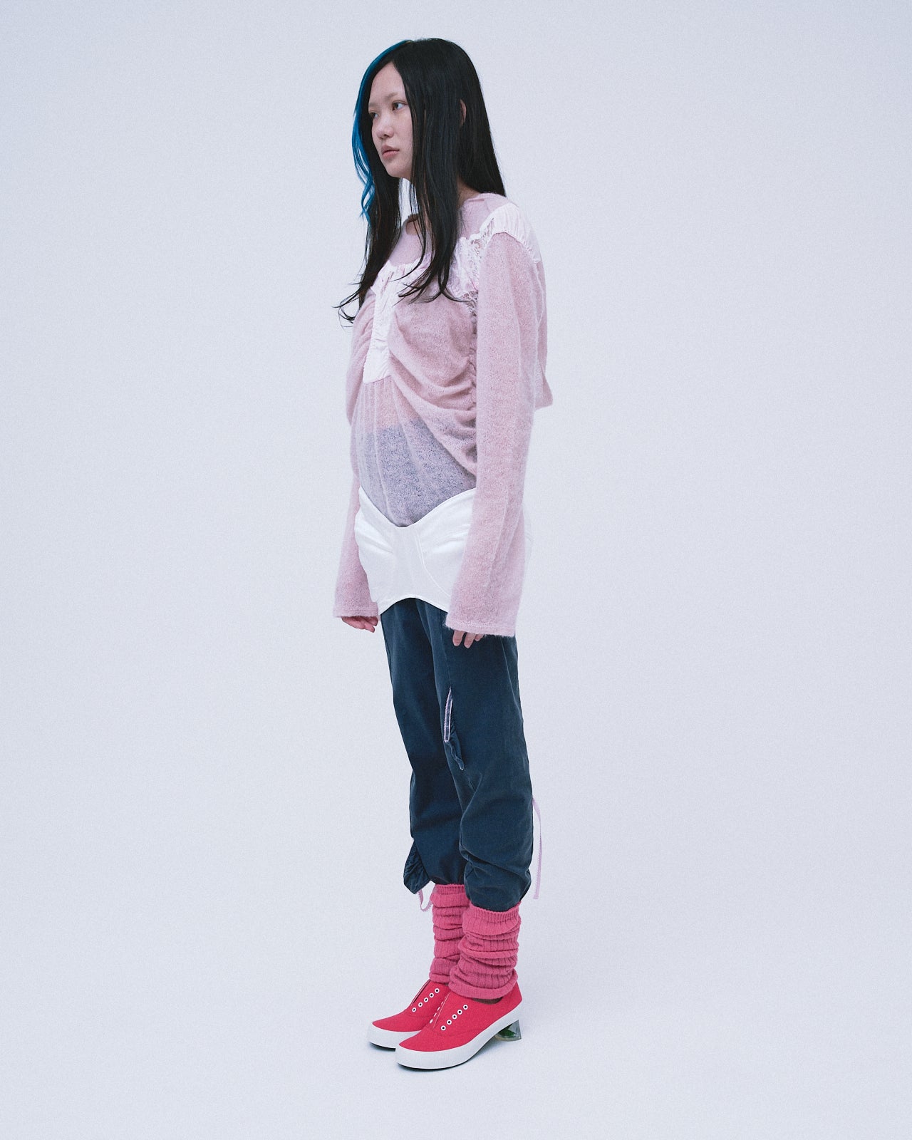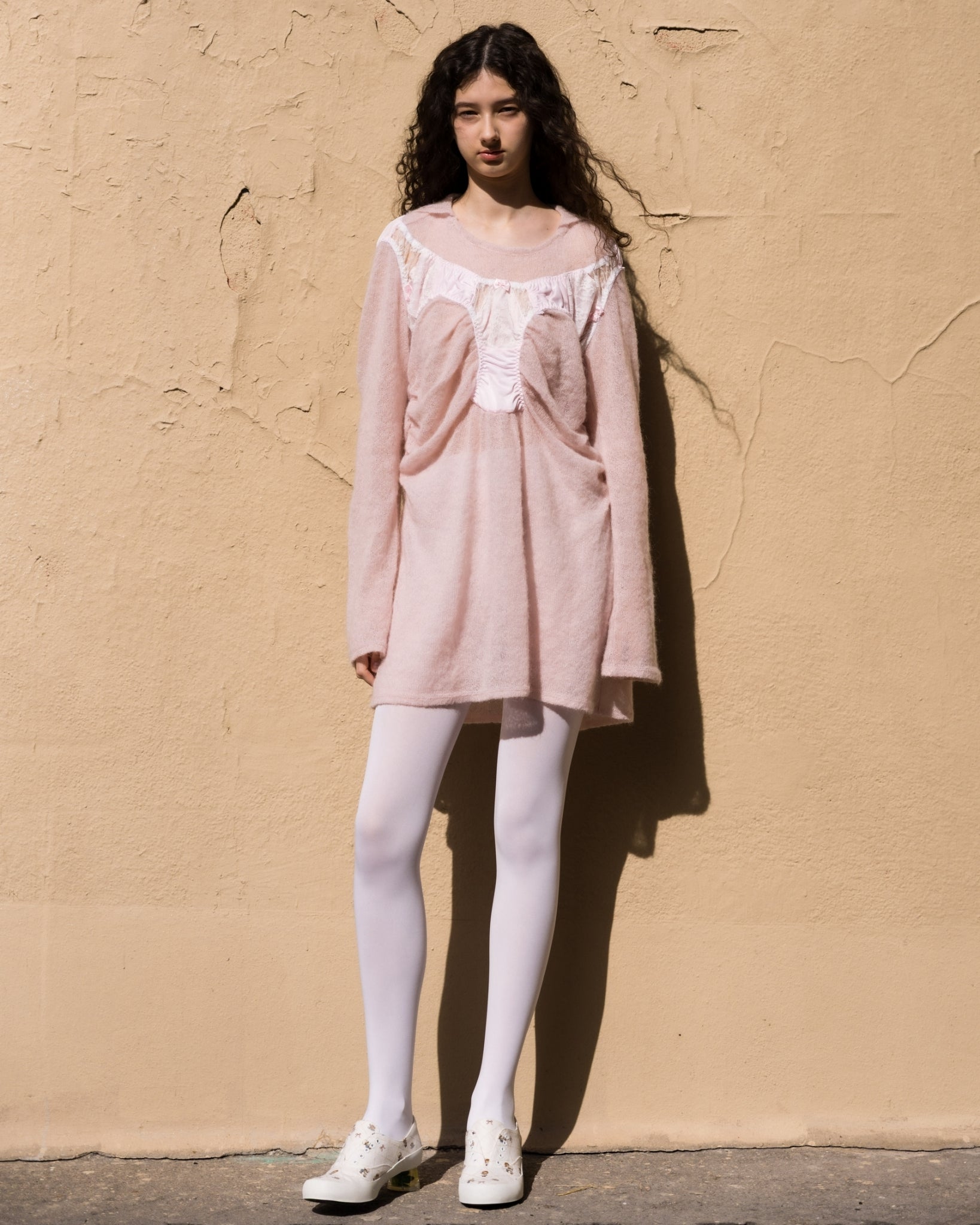 它由轻薄柔软的针织面料制成,具有透明的感觉。