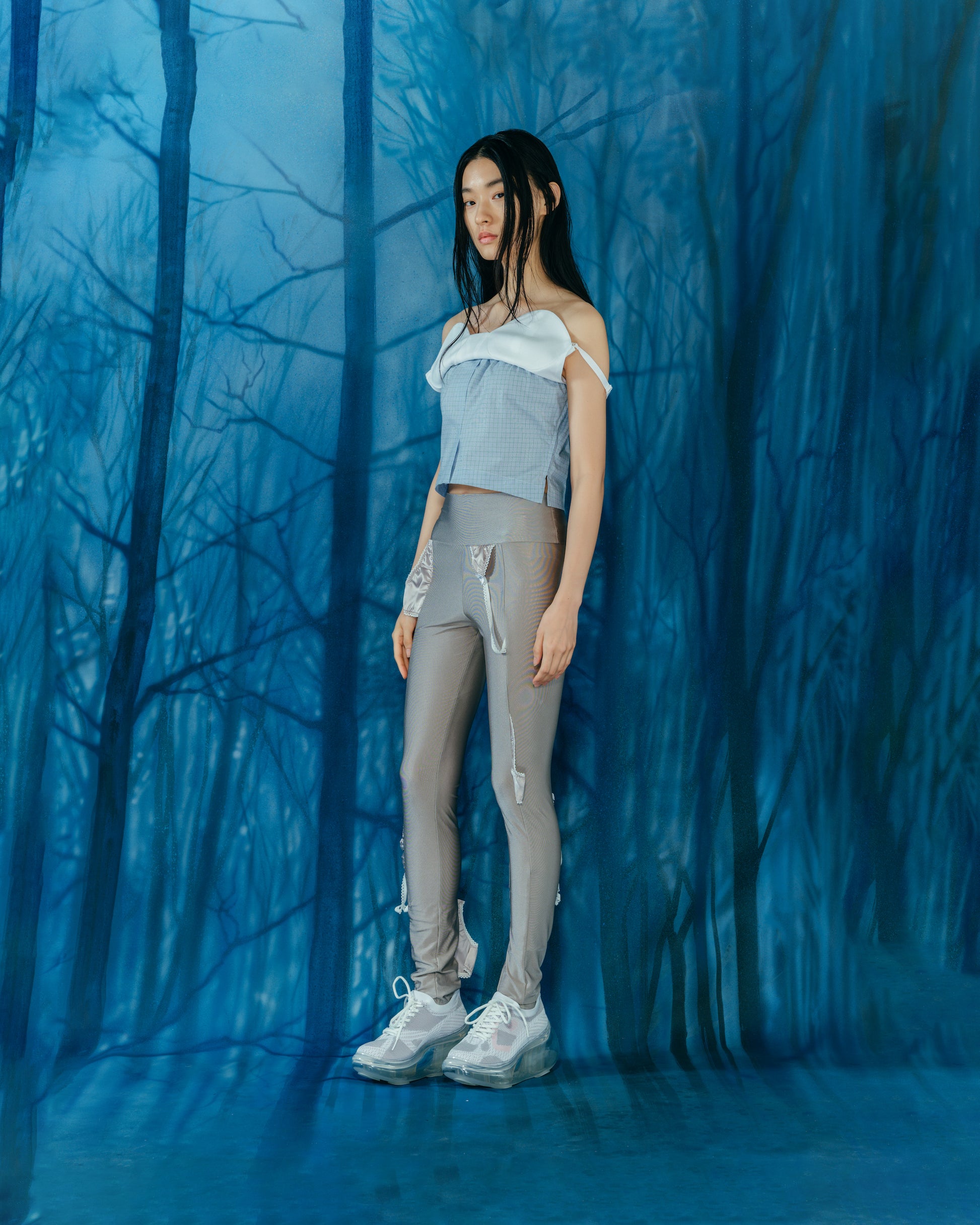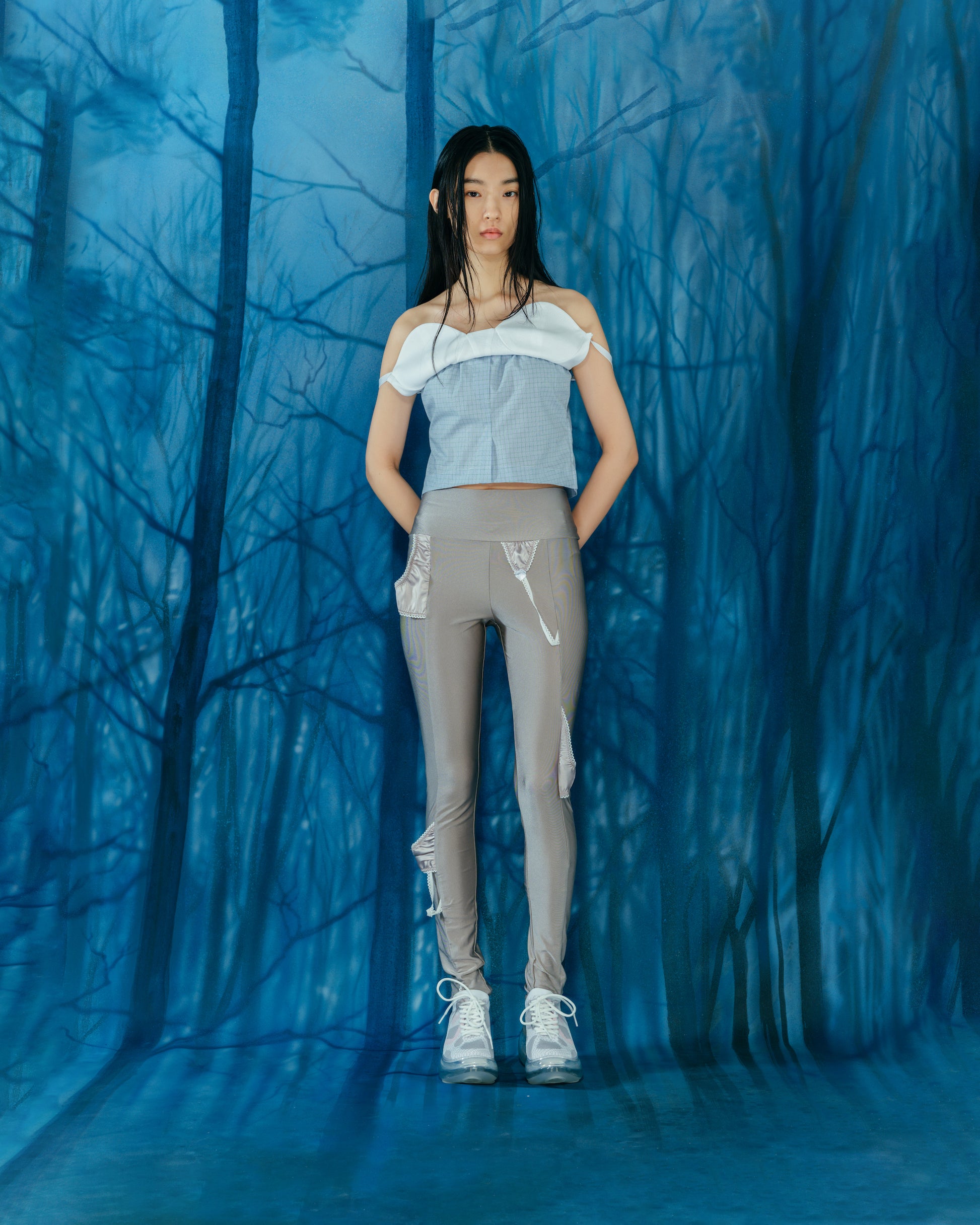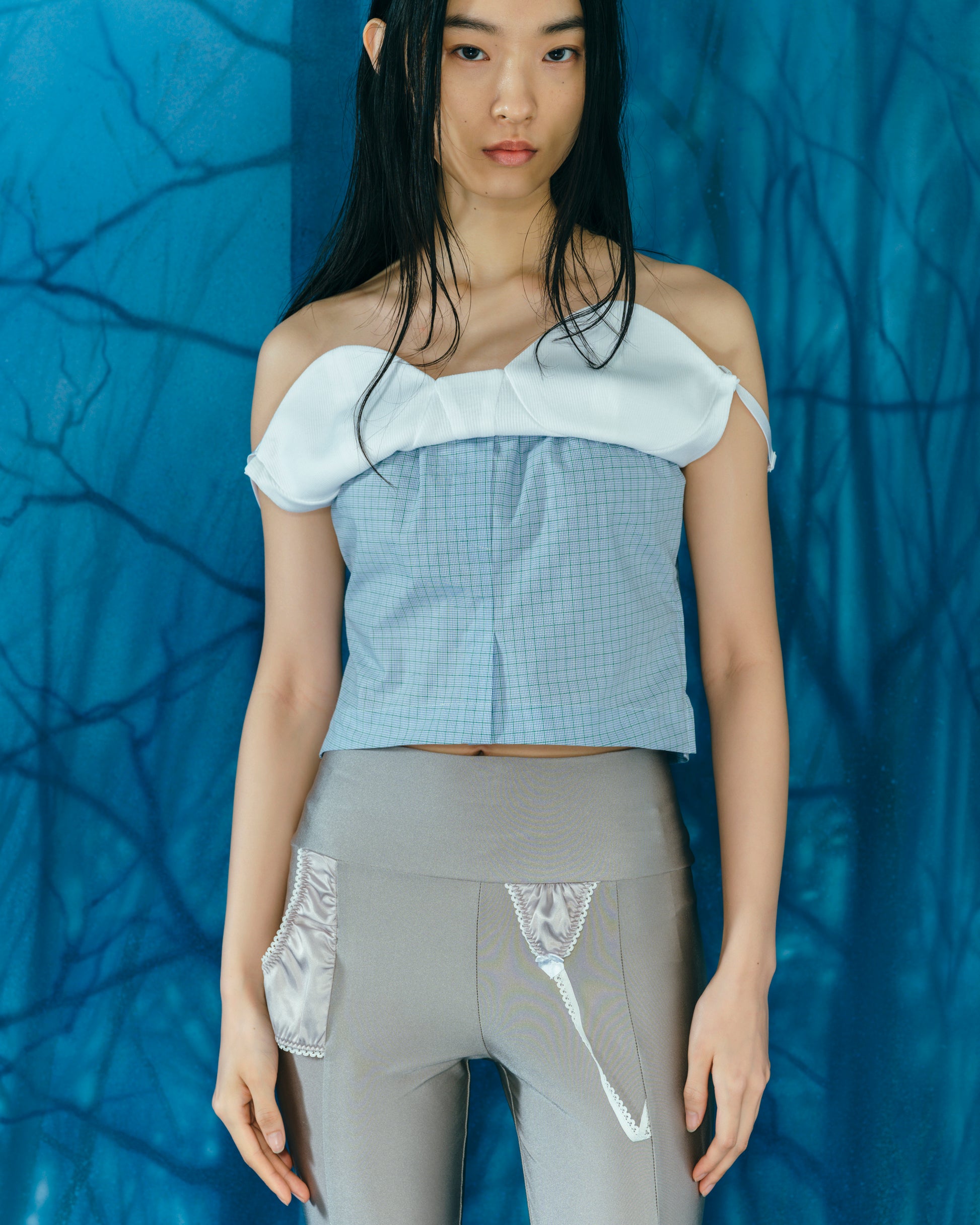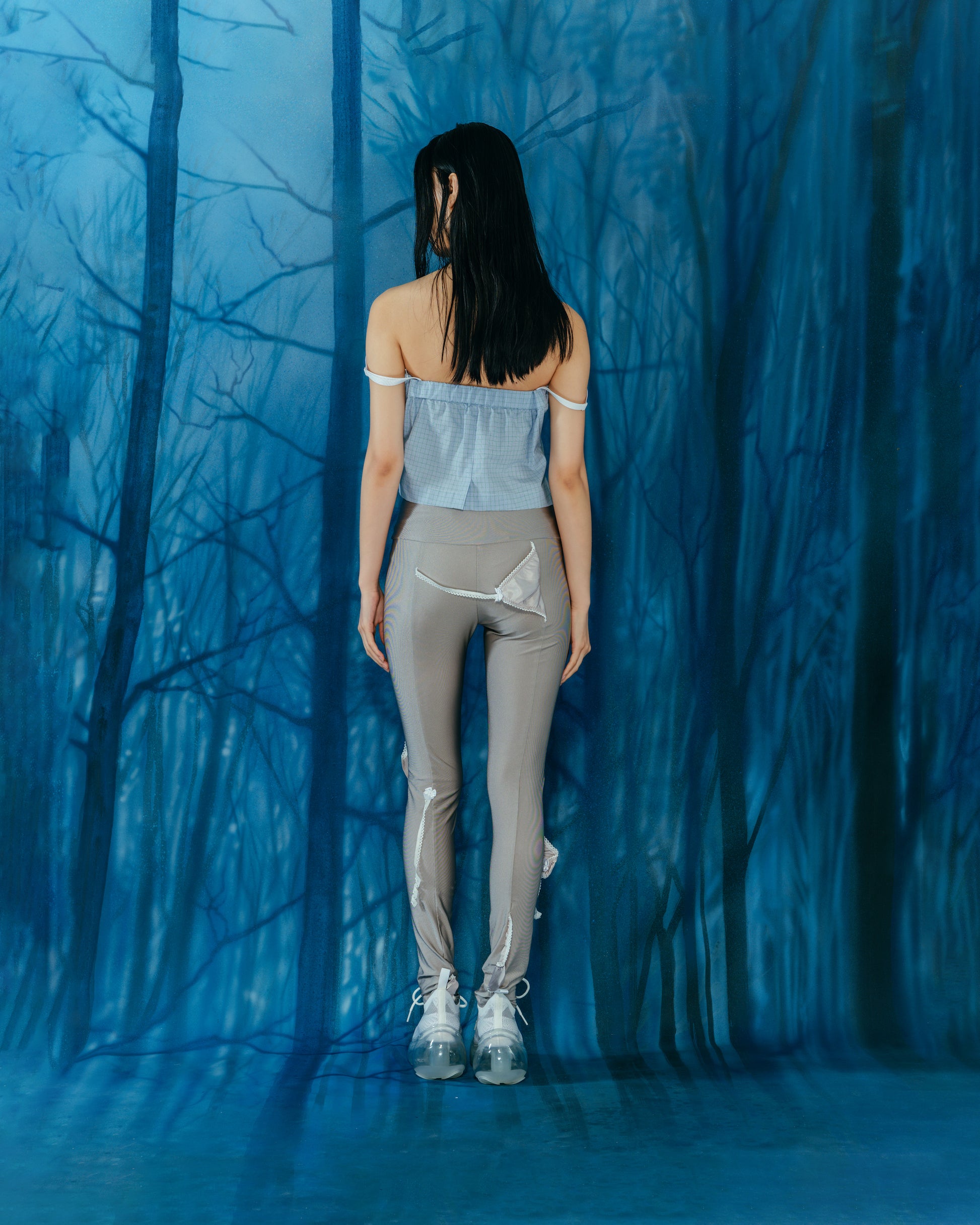 打底裤搭配内衣。易于搭配的灰色,可以享受层次感的搭配。